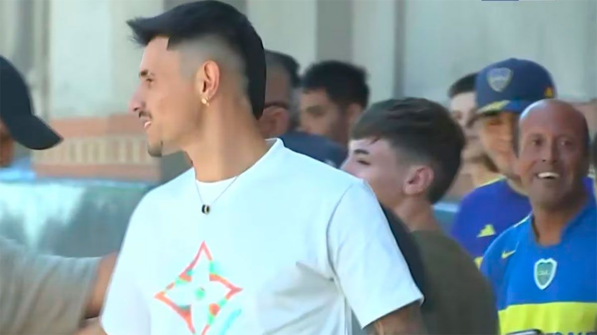 “Estoy muy contento de estar acá”, fueron las primeras palabras del flamante centrodelantero del Xeneize al aterrizar en el Aeroparque Metropolitano Jorge Newbery.
