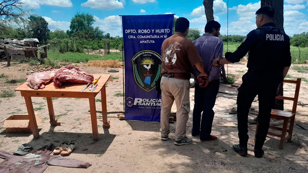 Tras seguir rastros durante dos kilómetros, la Policía halló al sospechoso oculto debajo de una cama en un paraje rural cercano a Añatuya. Secuestraron media res vacuna y elementos clave para la causa.
