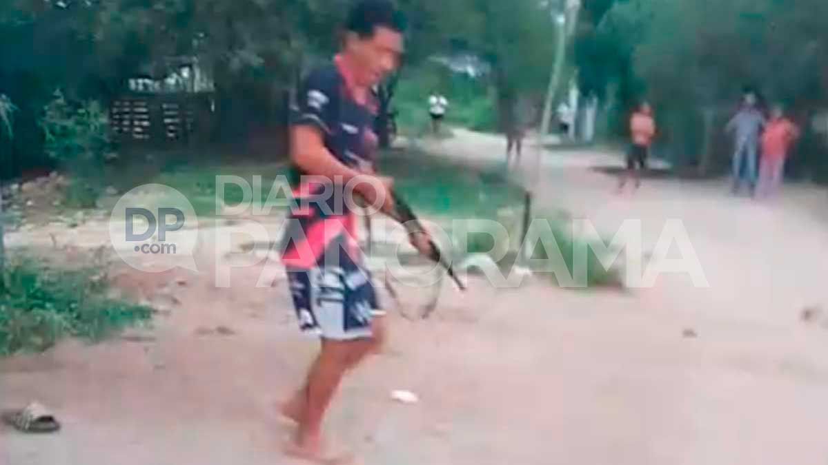 En medio del altercado, uno de los vecinos extrajo un arma de fuego y realizó disparos al aire, generando pánico entre quienes se encontraban en el lugar. La escena quedó registrada por un testigo con su teléfono celular.