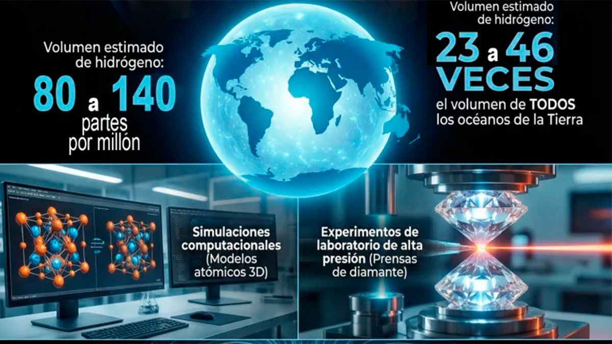 El hidrógeno es particularmente difícil de estudiar en el interior terrestre. Tiende a escapar hacia el espacio y su comportamiento bajo condiciones extremas es complejo. En el núcleo, las temperaturas superan los 5.000 °C y las presiones alcanzan millones de veces la atmosférica. Para estimar su presencia, los investigadores combinaron simulaciones computacionales con experimentos de laboratorio que replican esas condiciones extremas.