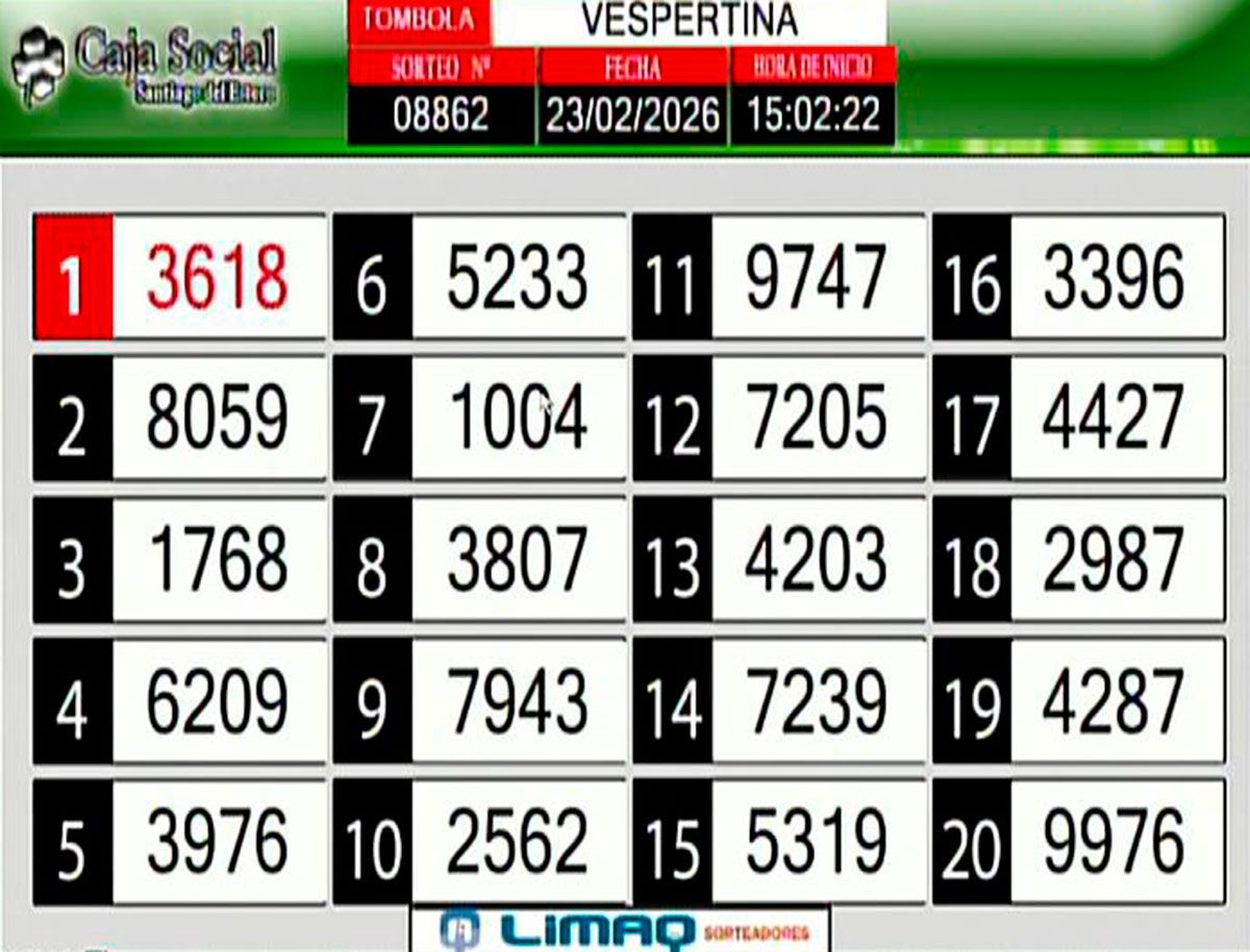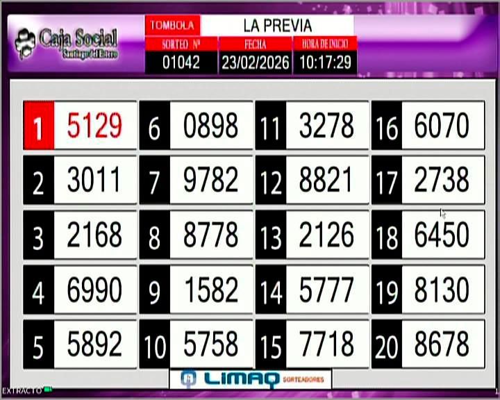 Este lunes 23 de febrero del 2026, como todos los días, se llevó a cabo un nuevo sorteo de la Tómbola Santiagueña.