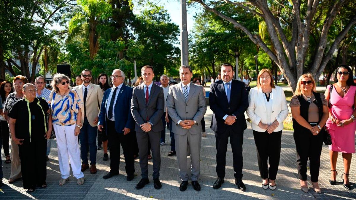 El homenaje fue organizado por la Asociación de Madres del Barrio San Martín y se desarrolló en la plaza ubicada frente a Casa de Gobierno que lleva el nombre del prócer argentino.