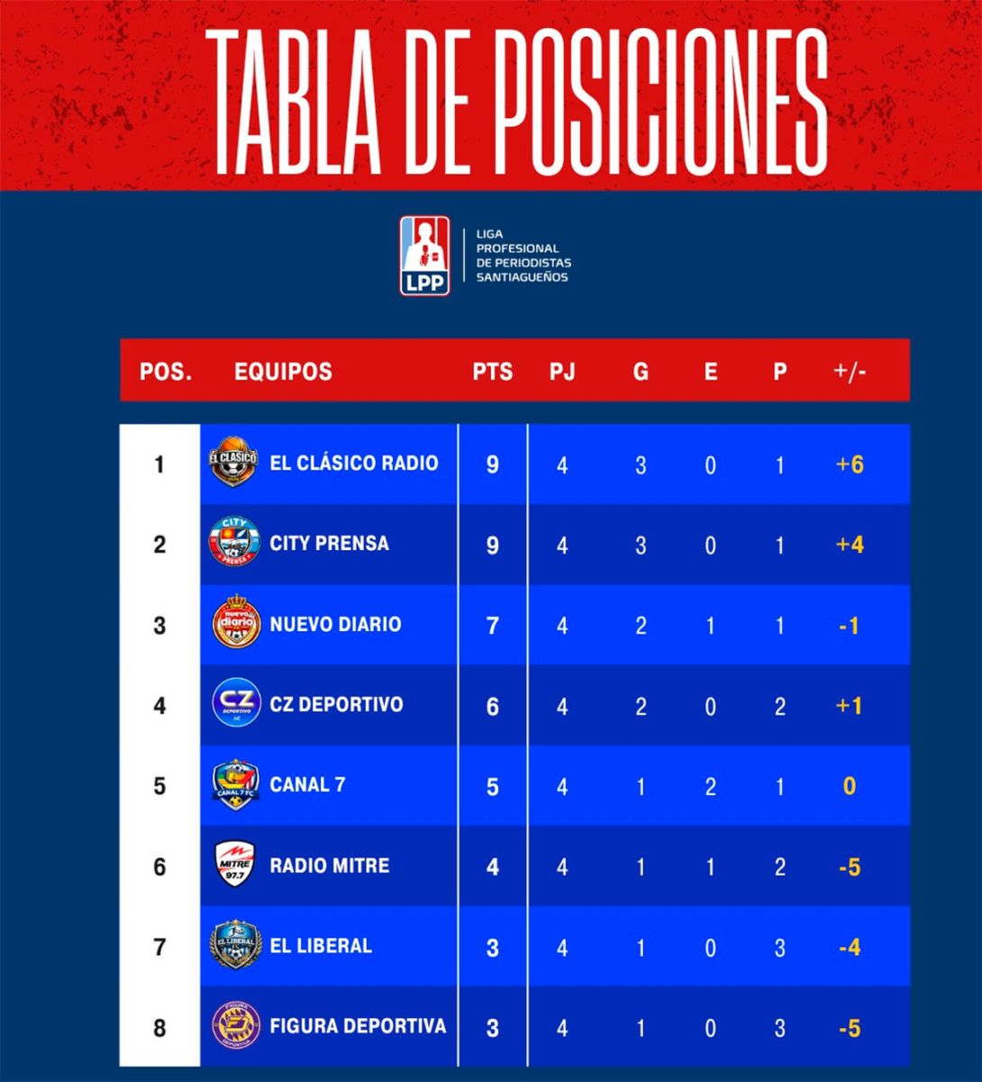La Liga Profesional de Periodistas Santiagueños disputó este lunes su cuarta fecha, en una noche cargada de goles, emociones y cambios importantes en la parte alta de la tabla. La jornada mostró un alto nivel ofensivo y varios encuentros que se definieron en los minutos finales, ratificando la paridad del certamen.