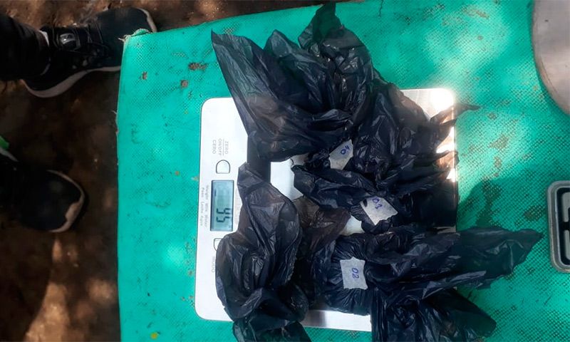 Durante el registro del inmueble, los efectivos secuestraron estupefacientes fraccionados que estaban escondidos en pares de medias, listos para su comercialización, siendo un total de 89 envoltorios: 30 con marihuana y 59 con cocaína, listos para la venta. Además, se incautaron recortes de nailon y una tijera, elementos comúnmente utilizados para el armado de dosis individuales. Estos indicios refuerzan la hipótesis de que la actividad ilícita no era ocasional sino sistemática.