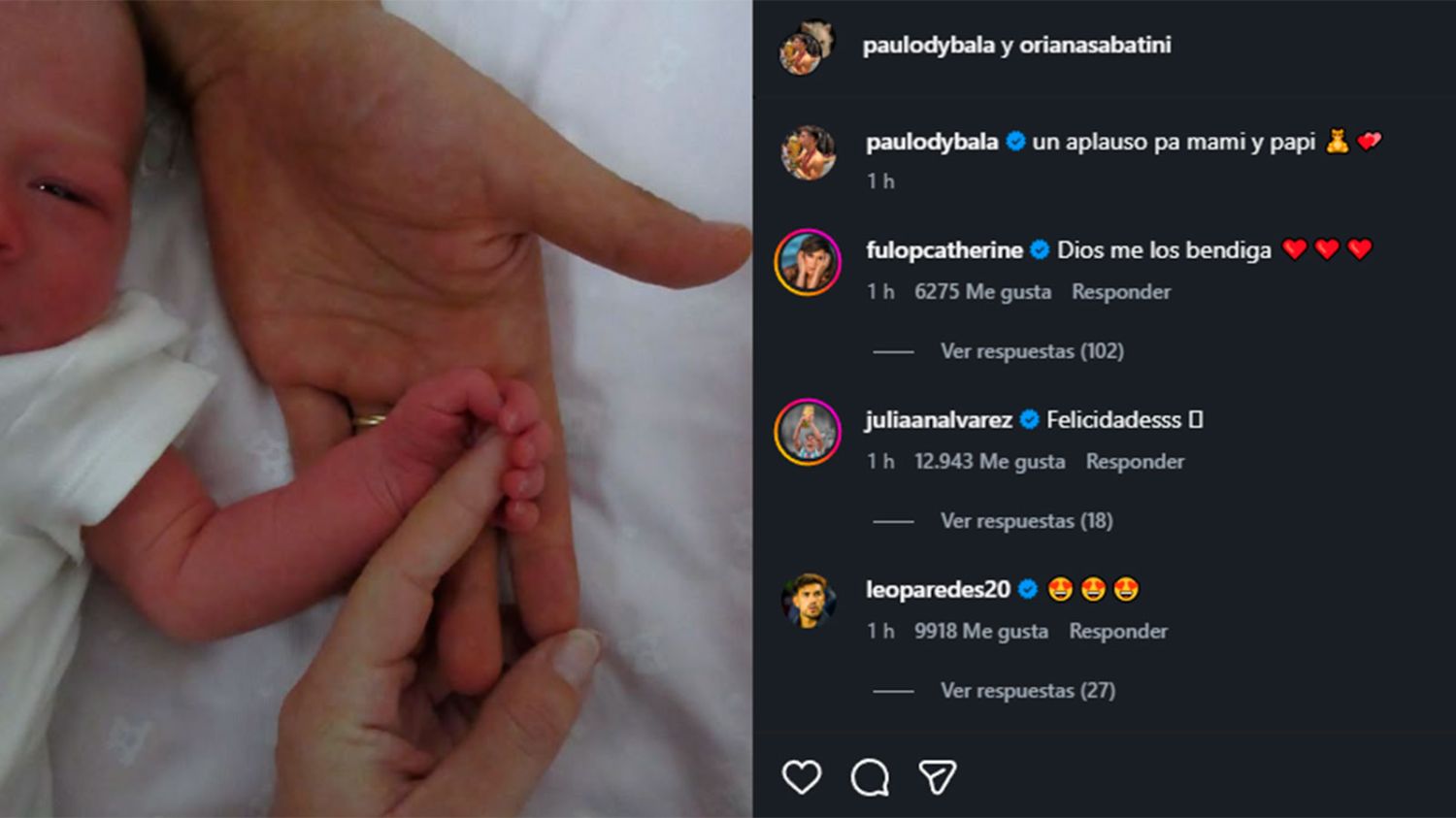 “Un aplauso pa’ Mami y Papi”, escribió Dybala con humor y ternura, poniéndose en el rol de vocero de su hija en la publicación que rápidamente se volvió viral.
