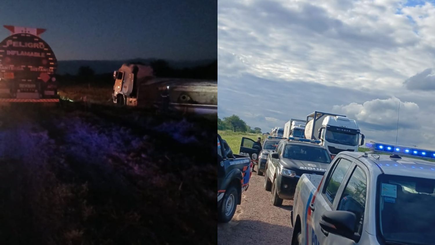 Un operativo coordinado entre efectivos de la Policía de la Provincia y dotaciones de bomberos permitió garantizar la seguridad en Ruta Nacional N°34, a la altura del kilómetro 617, en cercanías de la localidad de Lugones, tras el vuelco de un camión cisterna cargado con combustible, sin que se registrara derrame del material inflamable.