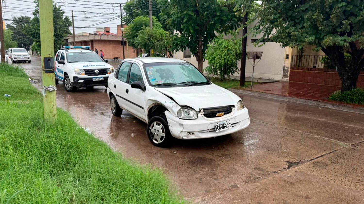 El siniestro vial ocurrió durante la lluviosa mañana de este martes en la intersección de Ameghino y Sarmiento. Los dos vehículos sufrieron importantes daños materiales.