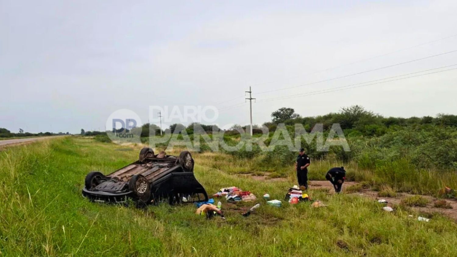 Por causas que se investigan, el conductor perdió el control del vehículo y el rodado terminó volcando a un costado de la calzada.