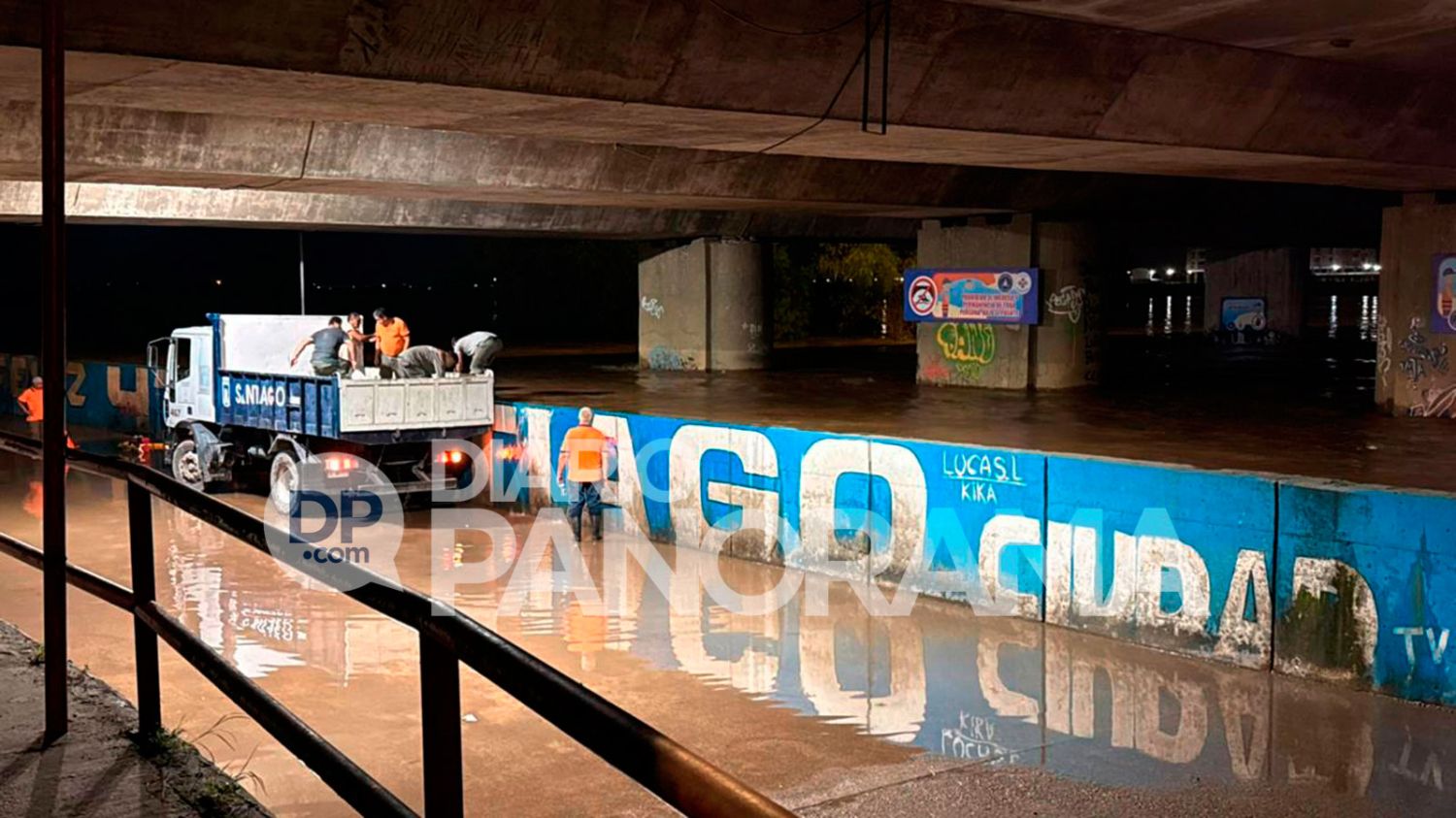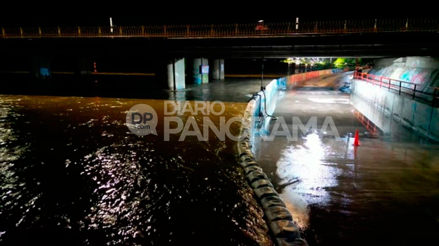 Uno de los primeros efectos del aumento del caudal se registró en la costanera Diego Armando Maradona, en el sector que pasa por debajo del puente de la autopista, donde el agua del río provocó filtraciones y terminó cubriendo parte de la calzada. Ante esta situación, las autoridades dispusieron cortar el tránsito vehicular en la zona para evitar riesgos.