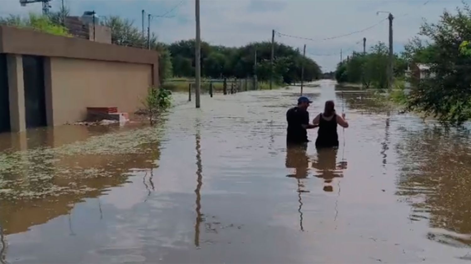La creciente del río Dulce inundó el Loteo Costa de Maco; la policía y equipos de asistencia ayudaron a vecinos y rescataron animales atrapados en las casas.