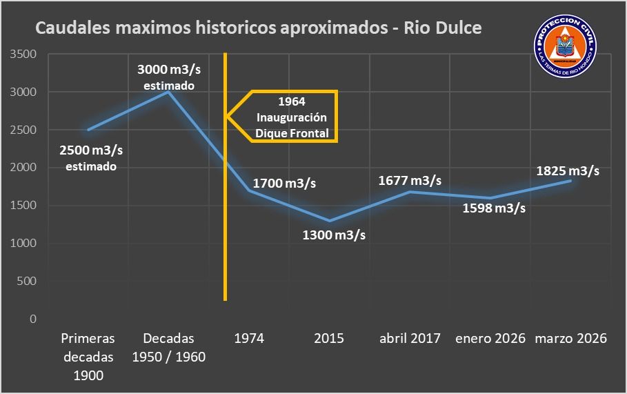 Los registros comparativos muestran que, en distintos eventos ocurridos en las últimas décadas, los caudales habían sido considerablemente menores, lo que refleja la magnitud de la creciente registrada durante marzo.