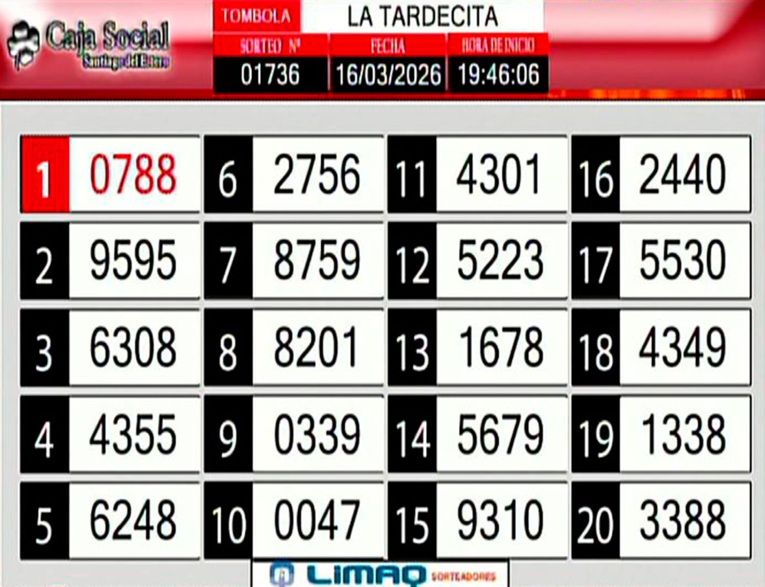 Este lunes 16 de marzo, como todos los días, se llevó a cabo un nuevo sorteo de la Tómbola Santiagueña.