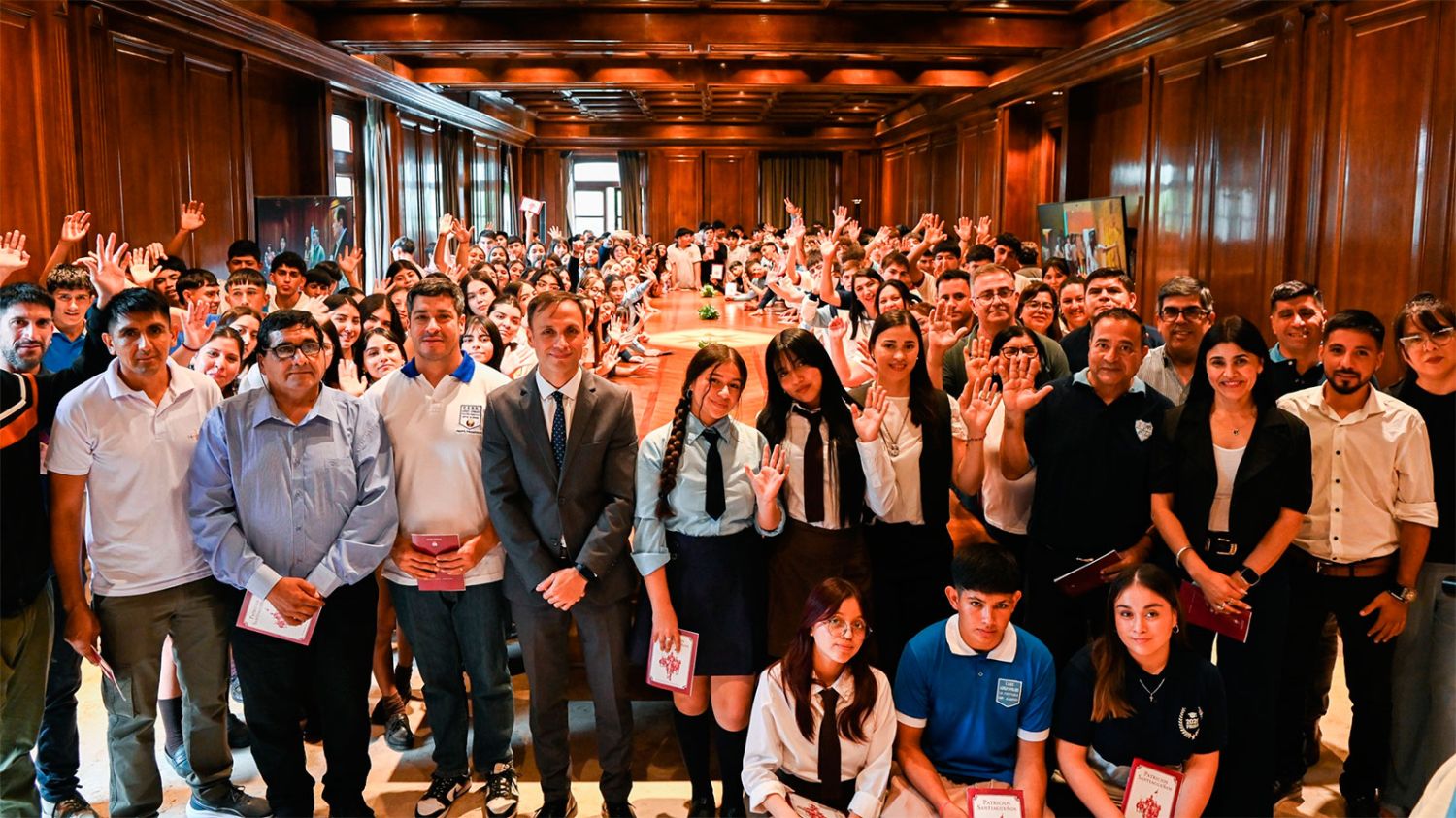 El programa “Conociendo mi provincia” hizo posible este martes que un total de 543 alumnos que cursan el último año del secundario en establecimientos de los departamentos Alberdi, Copo, Ojo de Agua, San Martín, Taboada, Choya y Moreno pudieran visitar la Casa de Gobierno, donde fueron recibidos en representación del gobernador Elías Suárez por el jefe de Gabinete, Víctor Araujo, y por la ministra de Educación, Mariela Nassif.