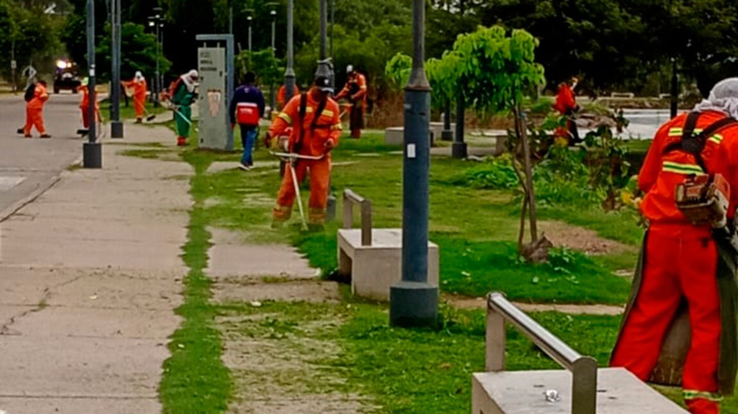 Las direcciones de Servicios Urbanos y Parques y Paseos realizó un operativo durante la jornada del sábado de desmalezamiento y limpieza en el Parque Aguirre, en la zona del Óvalo y del Cristo Redentor.