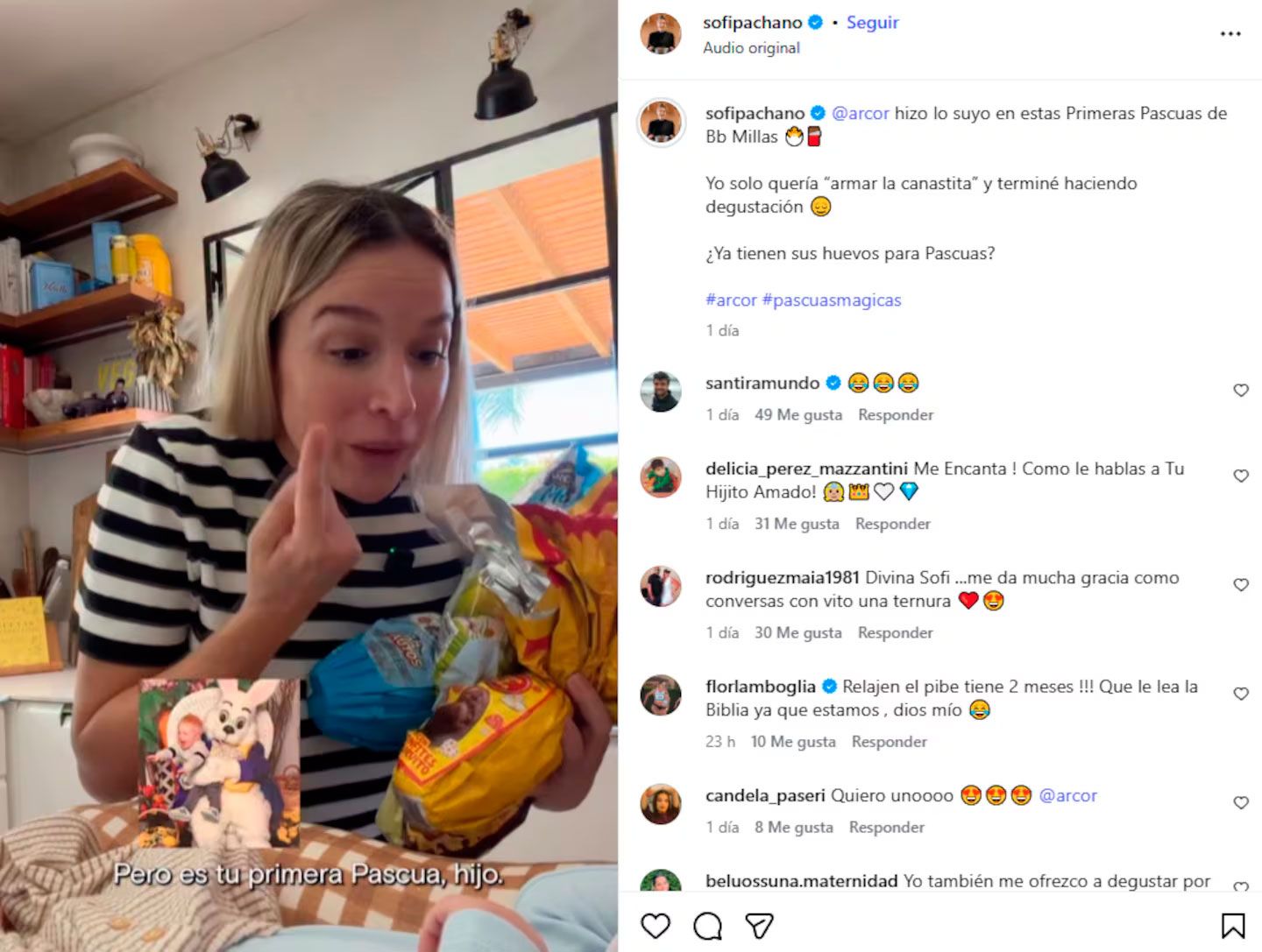 Sofía Pachano recibió duras críticas luego de compartir un video contándole a su bebé de dos meses acerca de la tradición del conejo de Pascua.