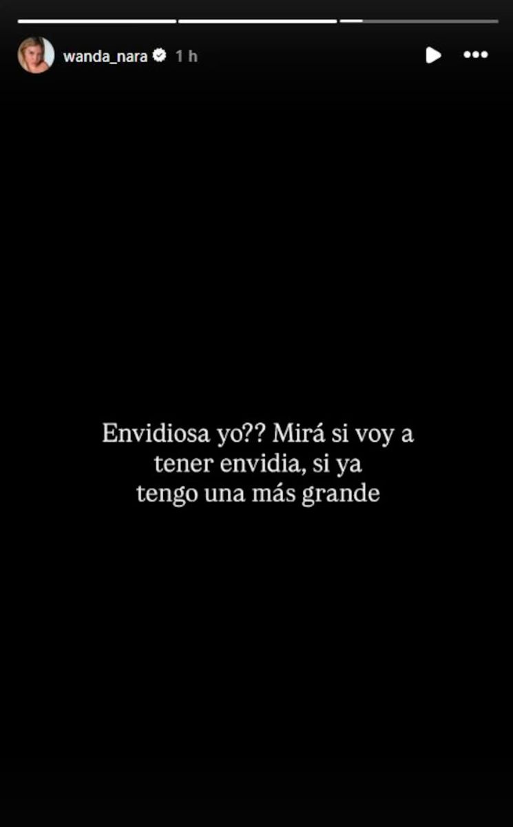Wanda Nara hizo un posteo con doble sentido y dejó a sus seguidores sin palabras. A través de sus historias de Instagram, la mediática escribió: “¿Envidiosa yo? Mirá si voy a tener envidia, si ya tengo una más grande“.