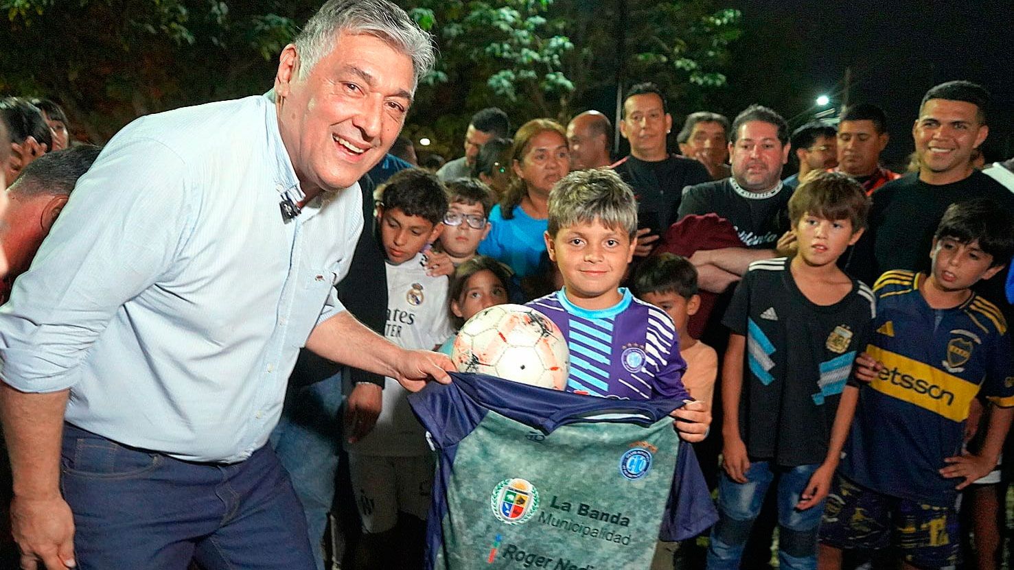 El intendente Ing. Roger Elías Nediani habilitó la obra de iluminación de la cancha de fútbol del barrio 17 de Octubre y entregó juegos de camisetas y pelotas a la escuela de fútbol del club barrial, donde el municipio realizó un importante Operativo de Integración Social.