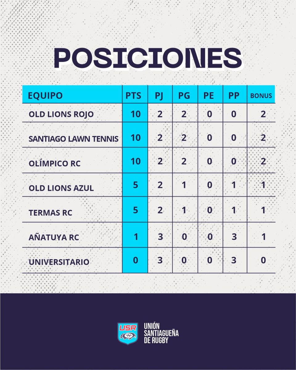 El Torneo Apertura “Juan Pablo Vaca Caldera” de la Unión Santiagueña de Rugby completó su tercera fecha y dejó como líderes a Old Lions Rojo, Santiago Lawn Tennis y Olímpico, en un arranque de campeonato marcado por contundentes victorias.