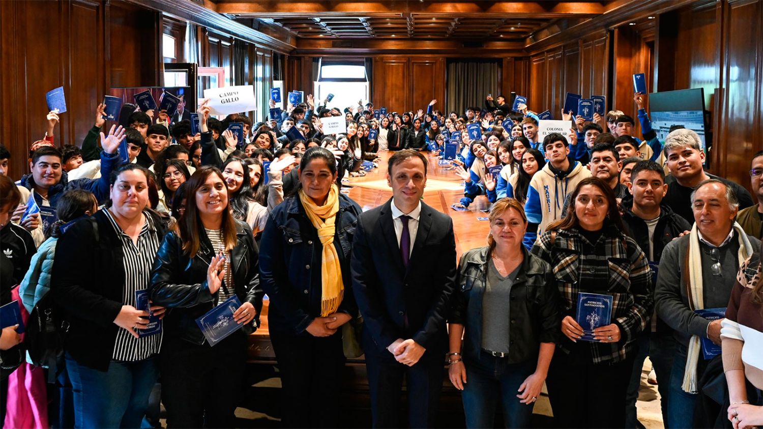 En representación del gobernador Elías Suárez, el jefe de Gabinete de Ministros, Víctor Araujo, recibió este jueves al mediodía en Casa de Gobierno la visita de alumnos del Colegio Secundario “7 de Noviembre”, de la localidad de Colonia El Simbolar, departamento Robles, y del Colegio Secundario de Campo Gallo, departamento Alberdi.