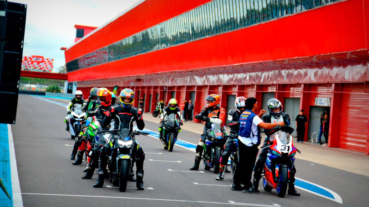 El piso se mantuvo en excelentes condiciones y el grip del trazado mejoró notablemente, lo que se reflejó en el rendimiento de cada grupo. Los participantes se organizaron por colores según nivel y cilindrada: Rojo (iniciados hasta 400cc), Azul (pro hasta 400cc), Verde (iniciados hasta 1000cc), Amarillo (intermedio hasta 1000cc), Violeta (avanzados hasta 1000cc) y Celeste (pro hasta 1000cc).
