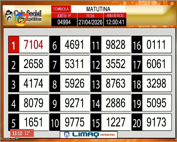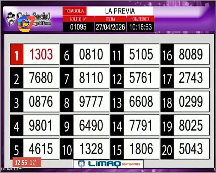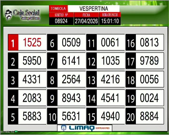 Este lunes 27 de abril, como todos los días, se llevó a cabo un nuevo sorteo de la Tómbola Santiagueña de la Caja Social de Santiago del Estero.