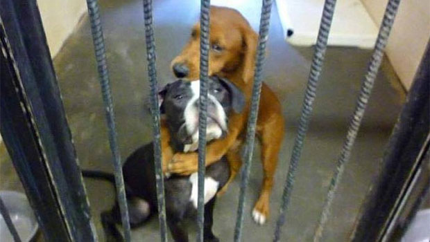 Se llaman Kala y Keira. La foto se viralizó por las redes sociales. Estos dos perritos estaban esperando ser sacrificados en un refugio de animales del estado de Georgia, EE.UU.