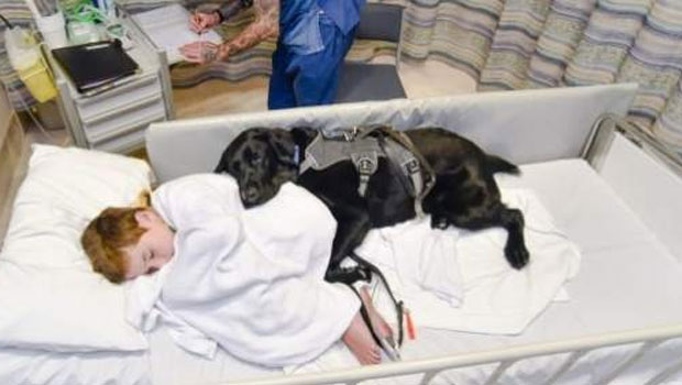 El vínculo entre el labrador y James, con autismo, es tan fuerte y positivo que le acompaña incluso en las pruebas que le hacen en el hospital.