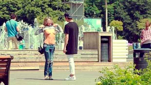 "¿Me puedes enseñar los pechos si te pago dinero en efectivo? No es tan difícil, solo tienes que subirte la camiseta y mostrármelos", pregunta Mamurin a las jóvenes. En la mayoría de las imágenes no tiene problemas para conseguir a chicas que se despojen de su ropa en la calle sin ruborizarse. A cambio les paga 120 dólares.